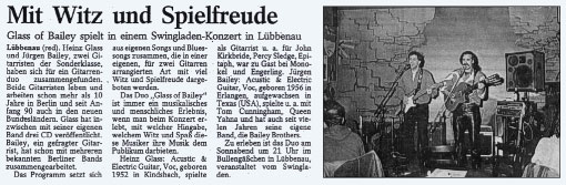 Heinz Glass und Jürgen Bailey, zwei Gitarristen der Sonderklasse, haben sich 1996 zu einem Gitar- renduo zusammengeschlossen. Beide Gitarristen leben und arbeiten schon seit etwa Mitte der 1980er Jahre in Berlin und sind seit Anfang der 1990er Jahre auch in den neuen Bundesländern bekannt.